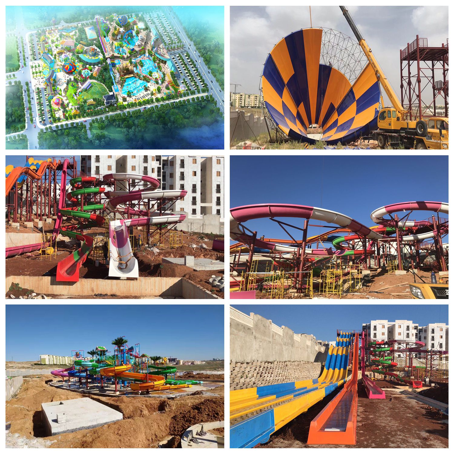 The water park project in Algeria covers an area of approximately 20,000 square meters. The water amusement facilities include wave pools, tornado slides, large skateboards, spiral slides, large water ring slides, enclosed slides, multi-person competition slides, water therapy equipment, large interactive water houses, and children's play equipment, etc. These are all combined to form a large-scale water park.