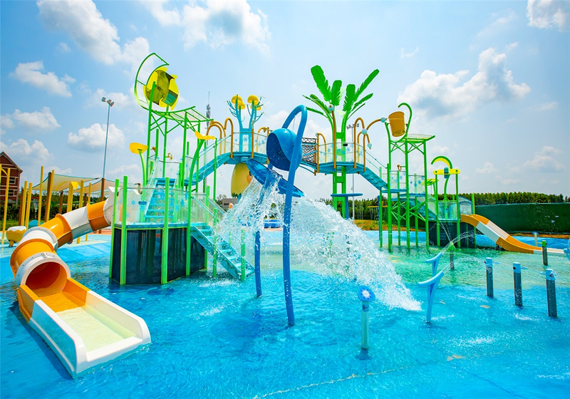To accommodate the specific requirements of amusement parks or hotel swimming pools, we provide a diverse range of themed water play structures for consideration. These structures can be customized to align with locally relevant intellectual property (IP) themes, thereby enhancing thematic coherence and visitor engagement within the amusement park context. The primary construction material is 304 stainless steel, selected for its corrosion resistance, durability, and compliance with safety and hygiene standards. Each water play structure incorporates multiple interactive elements, including spiral water slides—available in both open and enclosed configurations—with variable vertical drops; climbing features; sliding components; and interactive water-spray installations designed specifically for children’s play and sensory stimulation.